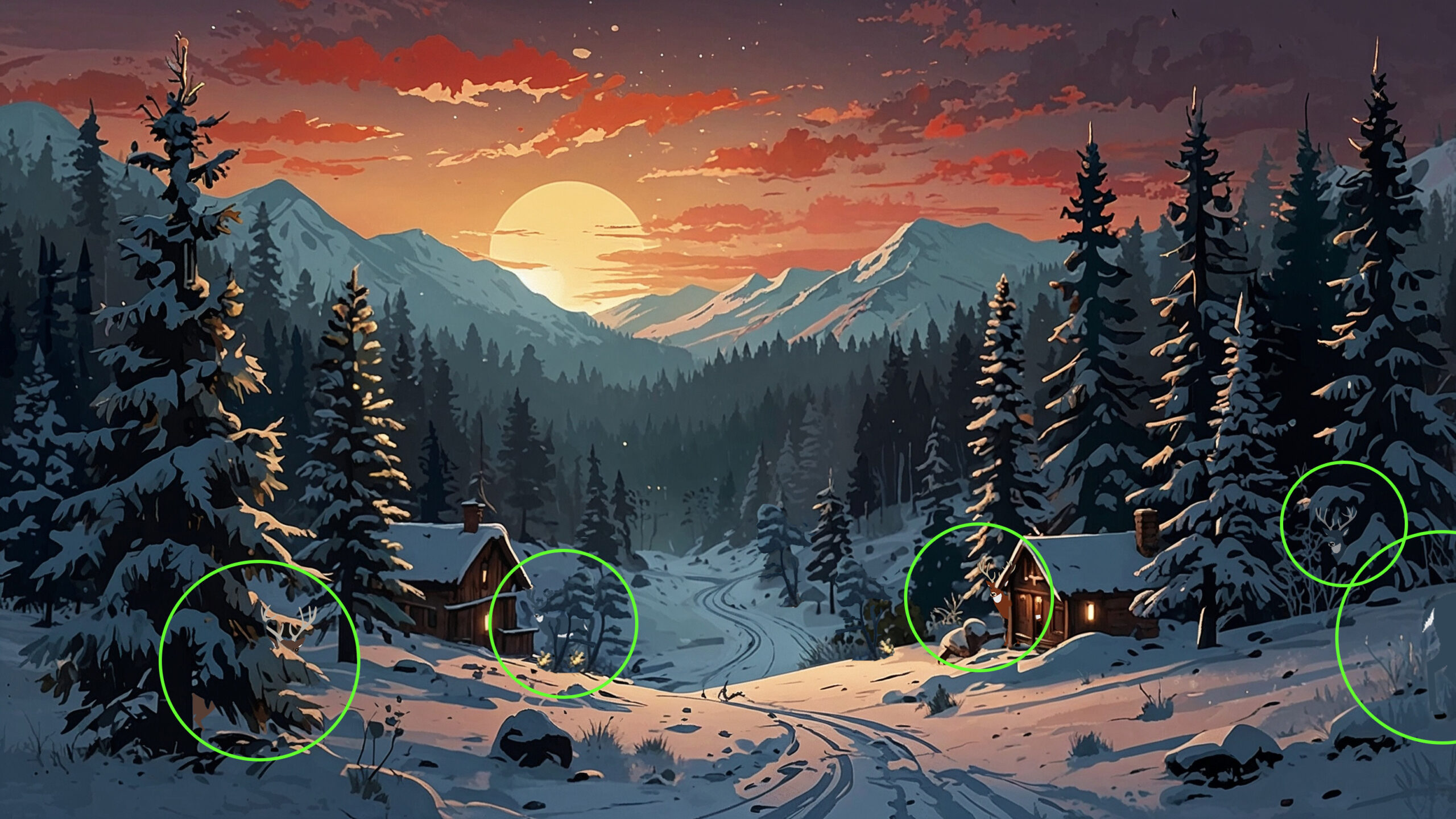 Auf diesem Bild haben sich fünf Hirsche versteckt. Kannst du sie alle finden?